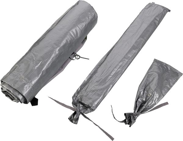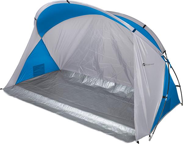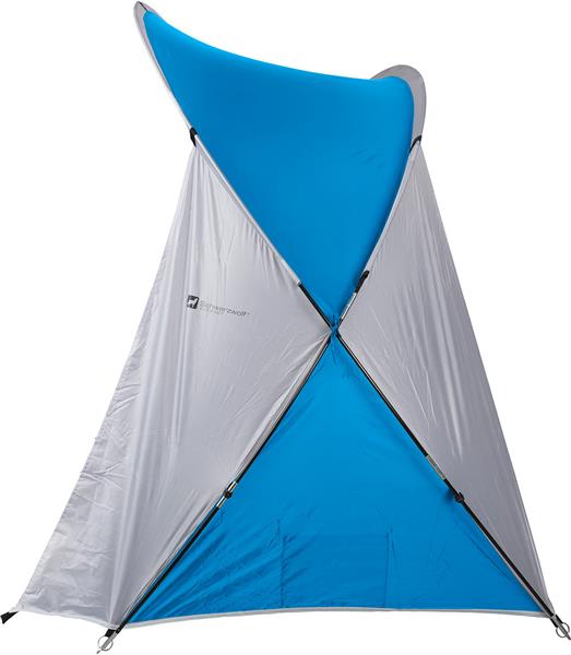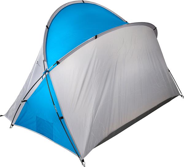 Namiot plażowy dla dwóch osób. Namiot wykonany z materiału o słupie wody 300mm, z filtrem UV40+. Całość zapakowana w woreczek zawierający: namiot, stelaż z włókna szklanego, 8 kołków ze stali nierdzewnej i 4 liny. Materiały: namiot – 190 PA (poliamid), podłoga – PE, stelaż – włókno szklane