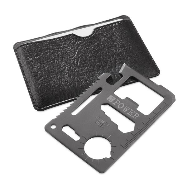 Narzędzie wielofunkcyjne w etui, 11 funkcji, otwieracz do puszek, nóż, śrubokręt, linijka, otwieracz do butelek, klucze do nakrętek, klucze motylkowe, piła, kątomierz