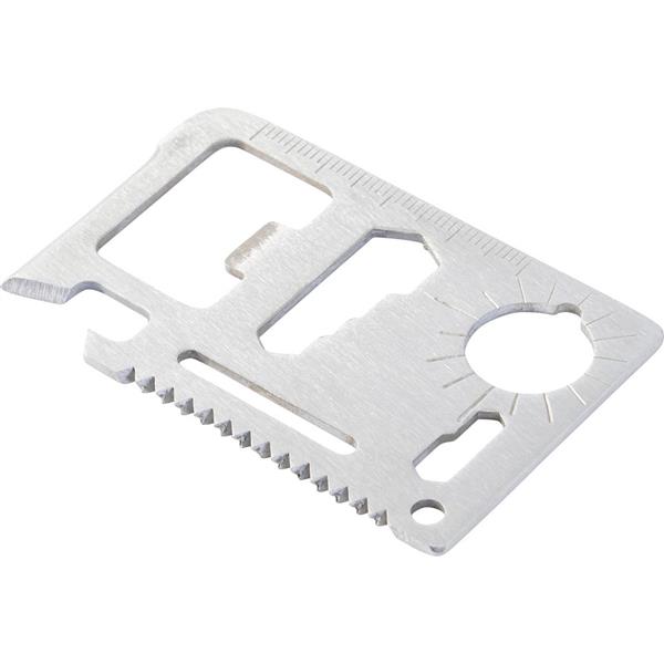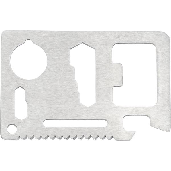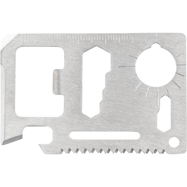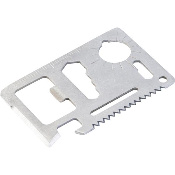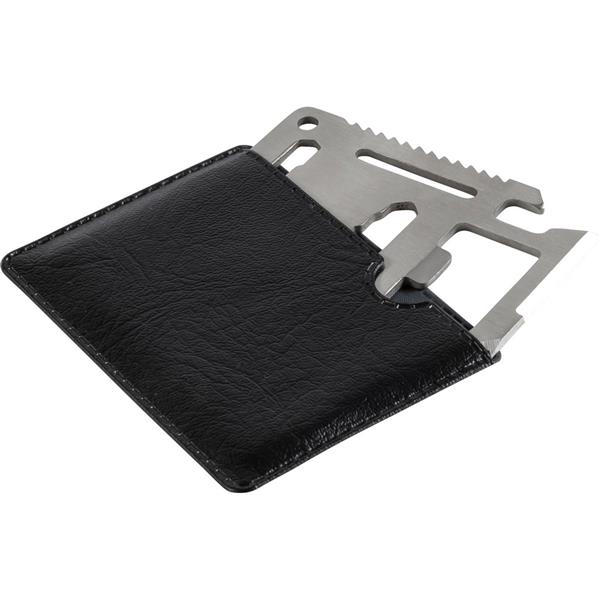 Narzędzie wielofunkcyjne, 11 funkcji: nóż, otwieracz do puszek, klucz motylkowy, piła, śrubokręt, otwieracz do butelek, linijka i klucze w różnych rozmiarach, w pokrowcu
