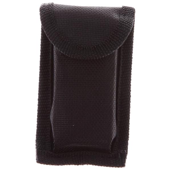 Narzędzie wielofunkcyjne w czarnym pokrowcu, posiada 12 funkcji oraz kolorowy uchwyt z czarnymi elementami, produkt wykonany z aluminium i stali nierdzewnej
