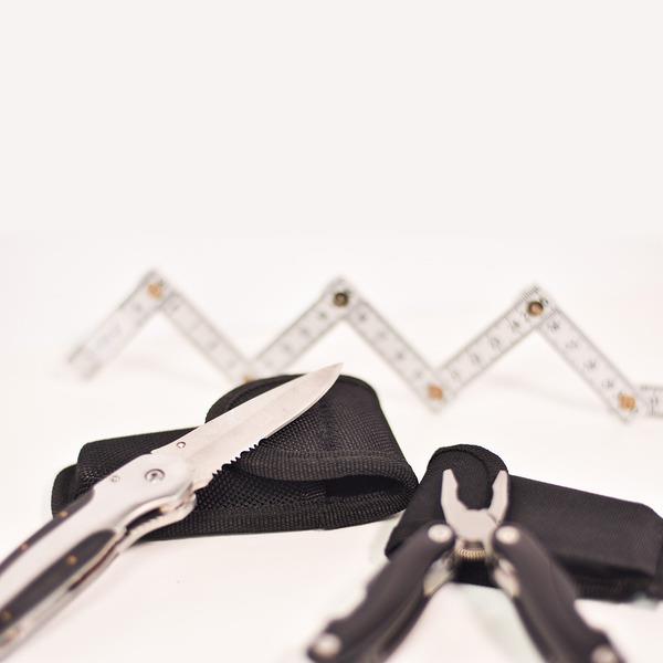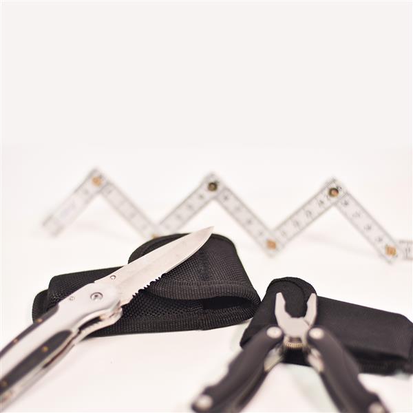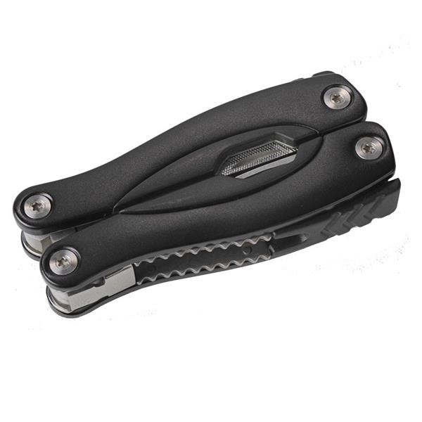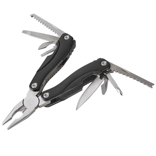 Narzędzie 9-funkcyjne pakowane w poliestrowe etui. Ostrza wykonane ze stali nierdzewnej. Narzędzie zawiera: piłę, wkrętaki płaskie, otwieracz do konserw, pilnik, szczypce uniwersalne, skrobak do ryb z końcówką do haczyków wędkarskich, otwieracz do butelek, wkrętak PH krzyżakowy, nóż.