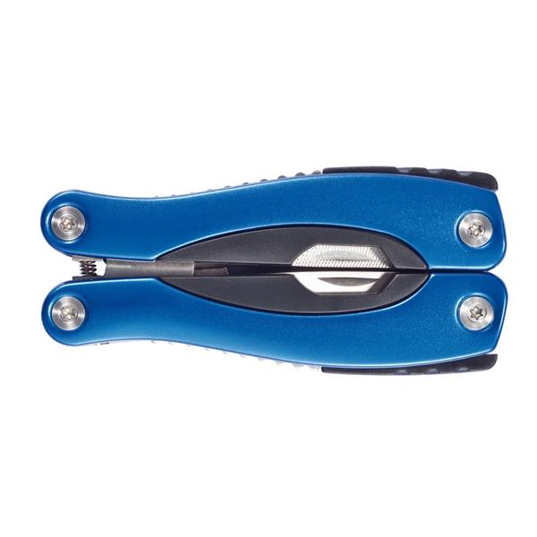 Narzędzie wielofunkcyjne, wykonane z aluminium, uchwyt z czarnymi detalami, 14 funkcji, czarny pokrowiec 600D w komplecie, ślad węglowy produktu: 2,53 kg CO2