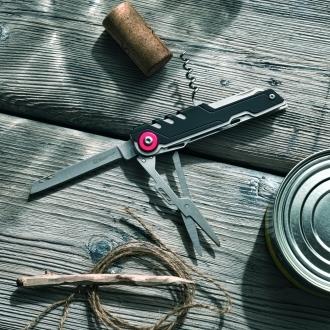 Narzędzie wielofunkcyjne marki Schwarzwolf z 12 przyborami. Wykonane ze stali S/S 2CR13.