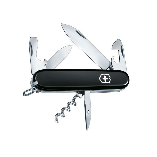 Narzędzie wielofunkcyjne Victorinox Spartan z 12 funkcjami: pęseta, małe i duże ostrze, brelok, otwieracz do puszek, śrubokręty (3 i 6 mm), korkociąg, wykałaczka, otwieracz do butelek, ściągacz izolacji oraz rozwiertak, przebijak i szydło, zapakowane w pudełko upominkowe, produkt wykonany z metalu i stali nierdzewnej