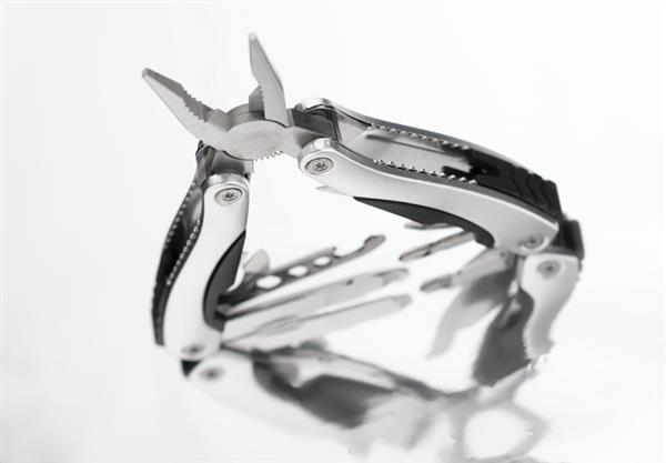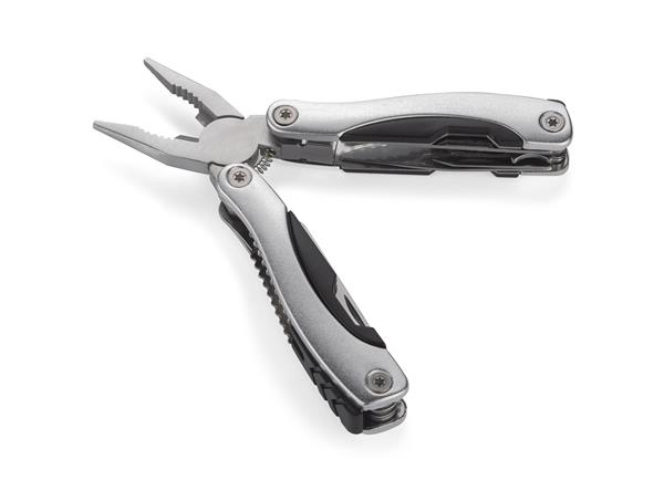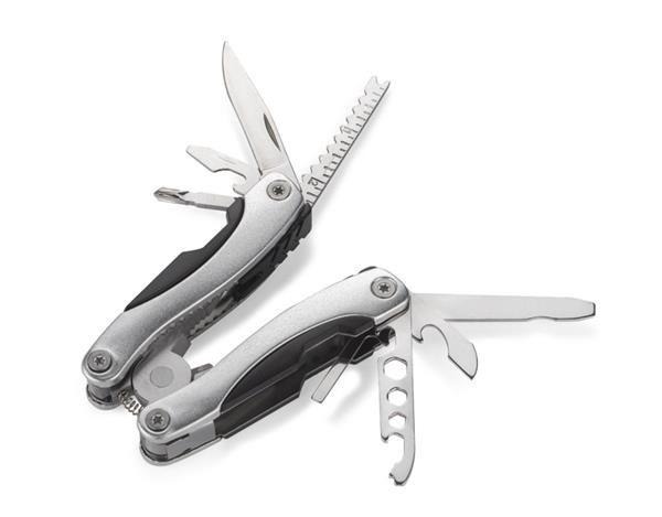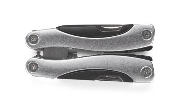 Narzędzie WORK to bardzo dobry wybór wśród kieszonkowych narzędzi wielofunkcyjnych. Posiada następujące funkcje: kombinerki, przecinak, nóż o gładkim ostrzu, piła, pilnik, śrubokręt płaski i krzyżowy, otwieracz do butelek i puszek oraz trzy rozmiary kluczy oczkowych. W komplecie znajduje się również czarny pokrowiec na narzędzie wykonany z tkaniny Oxford.