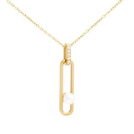 Złoty naszyjnik `Apolline` łączy elegancję z ponadczasową kobiecością. Delikatność połyskującej białej szklanej perły, inkrustowany kryształowy detal na ogniwie i owalna zawieszka dodają odrobiny luksusu. Idealnie wszechstronny, ten naszyjnik bez wysiłku łączy się z każdą garderobą. Naszyjnik `Apolline` wykonany jest ze stali szlachetnej, kryształu i białej szklanej perły.