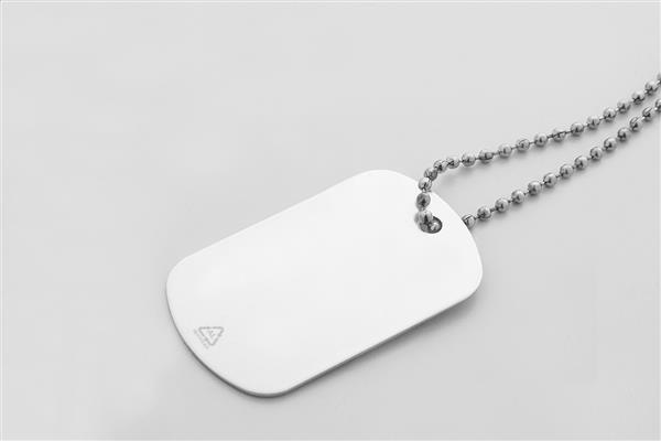 Nieśmiertelnik z recyklingowanego aluminium z naszyjnikiem w formie łańcuszka z metalowych kulek.