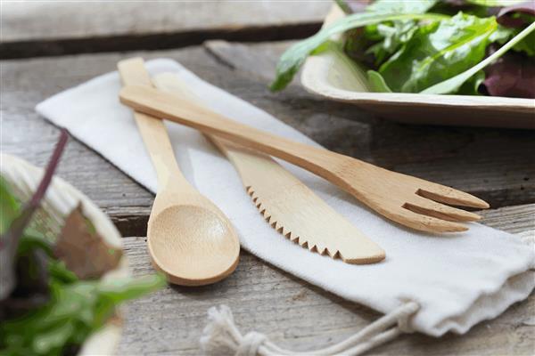 Zestaw sztućców bambusowych NATURAL TRIP, w zestawie nóż, widelec i łyżka. Zapakowany w bawełnianą torbę. Materiał: Bambus/Bawełna/Poliester Kolor: brązowy Tagi: Artykuły nadające się do recyklingu,artykuły gospodarstwa domowego,outdoor,noże/zestawy,sztućce
