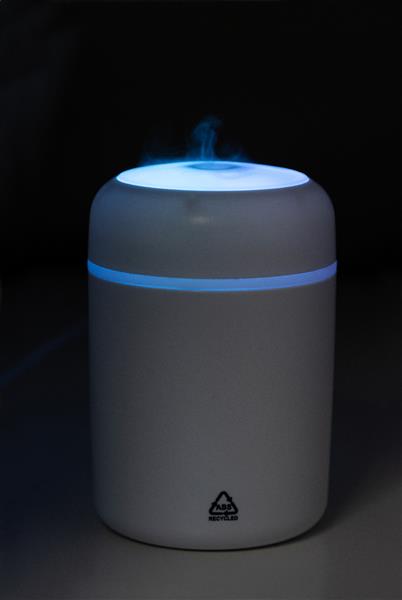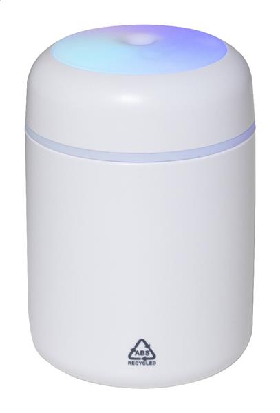 Nawilżacz powietrza z recyklingowanego tworzywa ABS z wielokolorowym oświetleniem LED. W zestawie kabel USB do ładowania. Pojemność zbiornika: 280 ml.