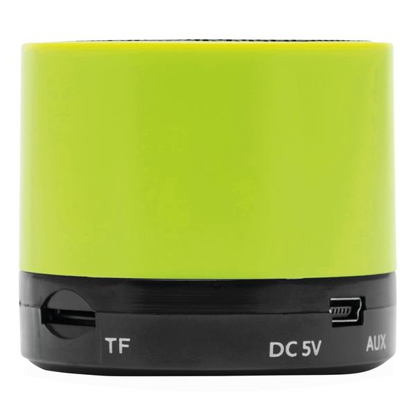 Głośnik bezprzewodowy NEW LIBERTY. Posiada wyjście muzyczne 3W, slot na kartę microSD, zawiera kabel ładujący (z USB na Mini-USB i złącze liniowe 3,5 mm), odtwarza MP3, z funkcją głośnomówiącą, funkcją radia FM, wbudowanym akumulatorem o pojemności ok. 450 mAh, czas pracy ok. 5 godzin, czas ładowania ok. 2 godzin, zasięg ok. 10 m, wyposażony w antypoślizgową podstawę.