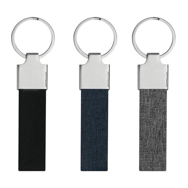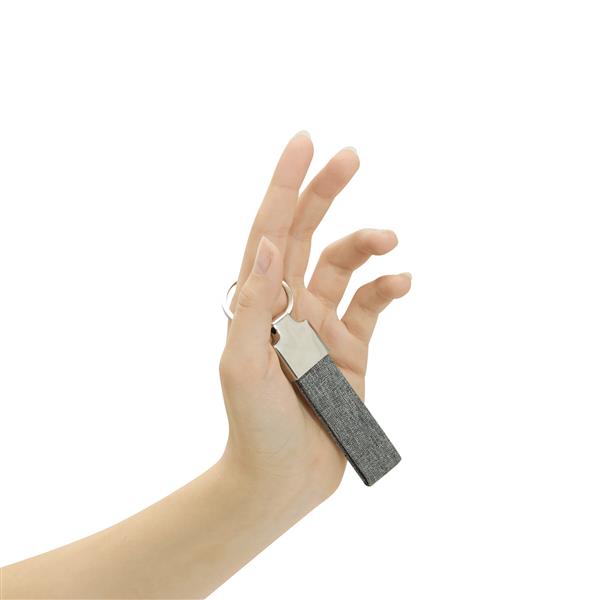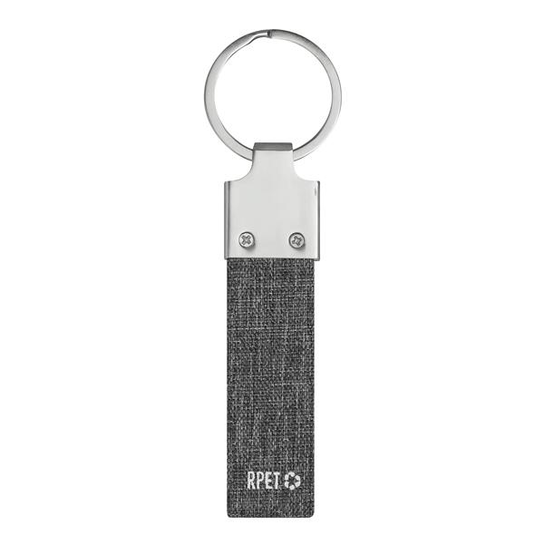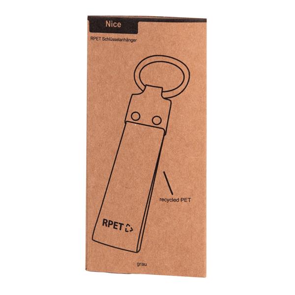 Brelok NICE. Wykonany jest z materiałów pochodzących z recyklingu. Posiada metalowe kółko na klucze.
