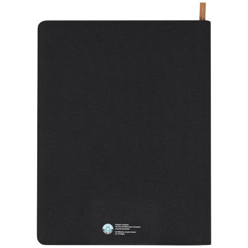 Nomumi teczka z notatnikiem do pisania częściowo wykonana z poużytkowego poliestru pochodzącego z recyklingu z certyfikatem RCS, co czyni ją bardziej zrównoważonym wyborem, ponieważ pomaga zmniejszyć zużycie pierwotnego surowca. Posiada zapięcie na zamek błyskawiczny, pętelkę na długopis, kieszeń harmonijkową i 20 białych kartek w linie z papieru z recyklingu o gramaturze 70 g/m2 pochodzącego ze zrównoważonych źródeł. Pióro i inne akcesoria widoczne na zdjęciach nie są dołączone do tego produktu.