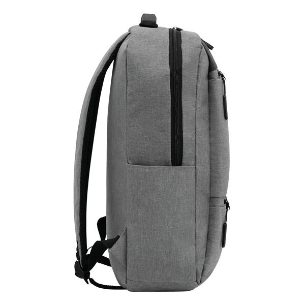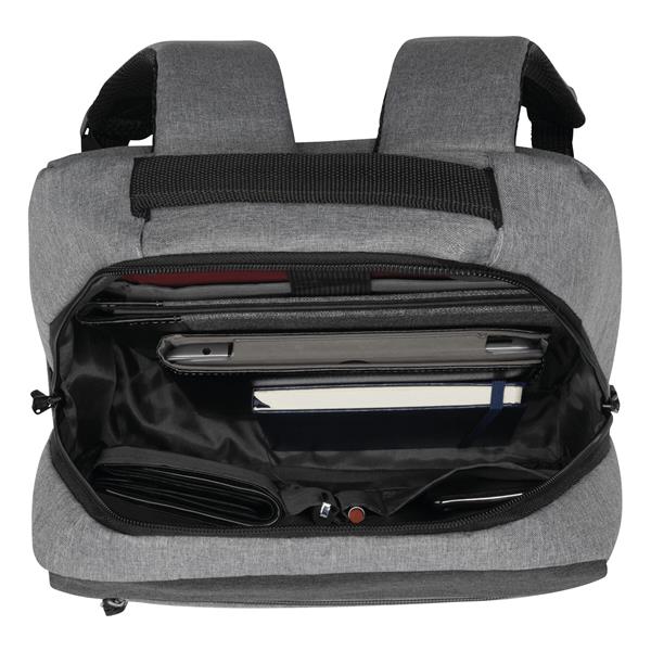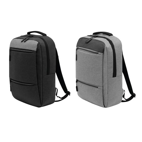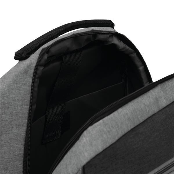 Plecak NORDIC LINE. 2 przednie kieszenie zamykane na zamek błyskawiczny, komora główna z zamkiem i watowaną wewnętrzną kieszenią na laptop lub tablet, organizer z 4 kieszonkami, 1 boczna kieszonka, watowana rączka, ergonomiczne paski na ramię wspierające plecy
