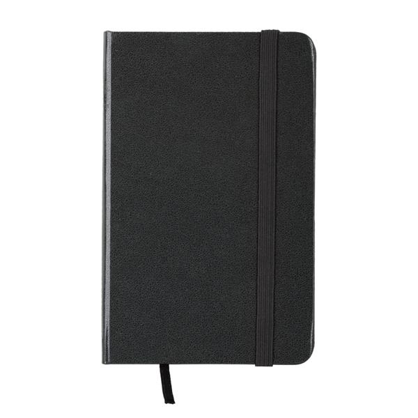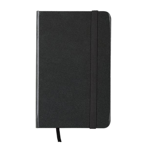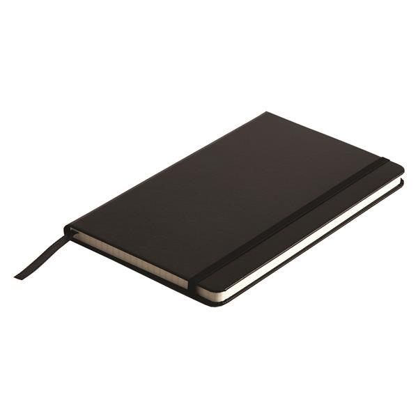 Notatnik w twardej oprawie z elastyczną gumką chroniącą wnętrze. Papier kremowy chamois w kratkę o gramaturze 70 g/m2 o wymiarze 13 x 21 cm, 80 kartek, tasiemka do zaznaczanie ostatniej zapisanej strony. Rozmiar biurkowy.