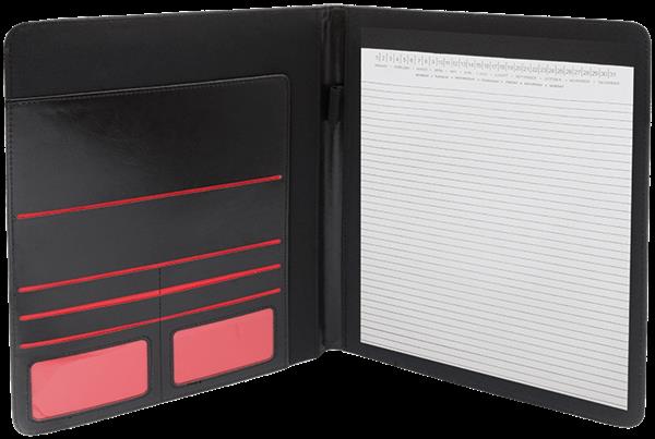 2 kieszenie na dokumenty 2 kieszenie transparentne 4 kieszenie na wizytówki Kieszeń na notes Notes 20 stronicowy w linie Uchwyt na pióro Materiał: Ekoskóra Nebraska Rozmiar: (A4) 24 x 31,5 x 1,5 cm Kolor: czerwony Znakowanie: 147903640