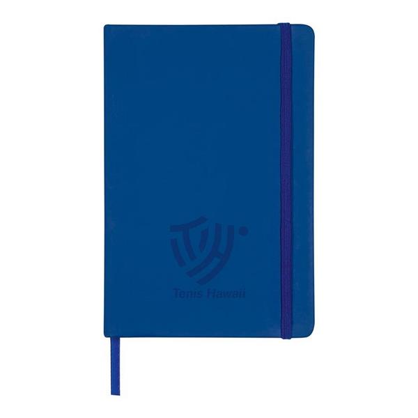 Notatnik w formacie A5, posiada 96 kartek w kropki (192 strony), tasiemka zakładkowa umożliwia wygodne zaznaczanie ostatniej strony lub ważniejszych notatek, dodatkowe zamknięcie w postaci dopasowanej kolorystycznie elastycznej opaski, twarda okładka wykonana z PU