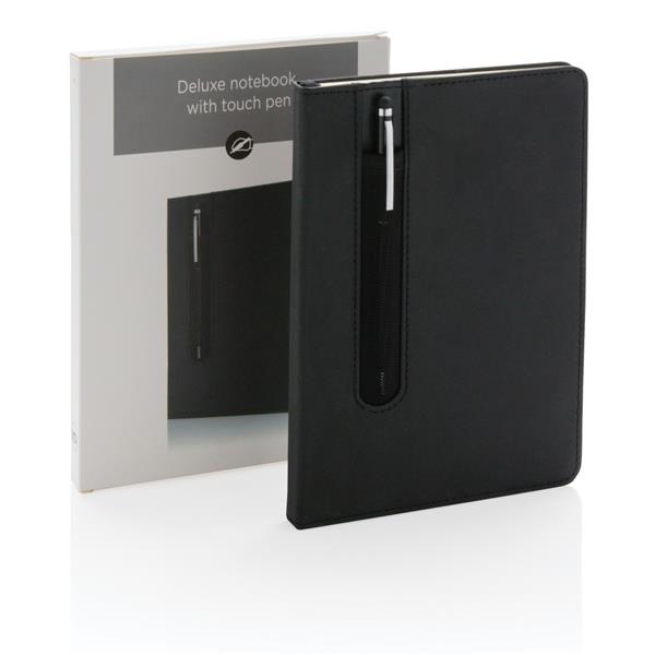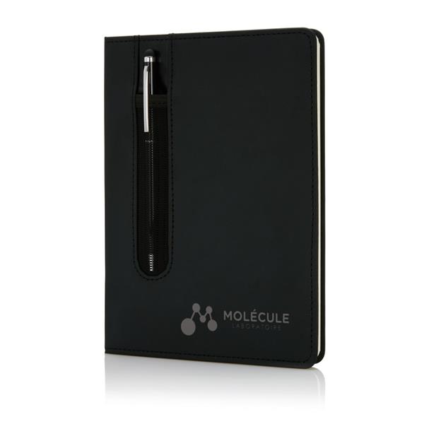 Notatnik A5 (80 kartek 80 g/m2 w linie), w komplecie metalowy długopis, touch pen, miejsce na przybory do pisania, okładka wykonana z PU, w ozdobnym pudełku, ślad węglowy produktu: 0,85 kg CO2
