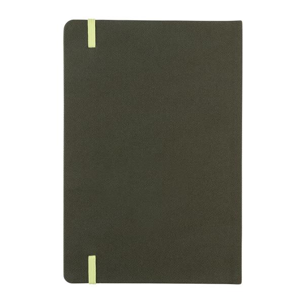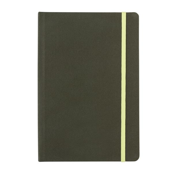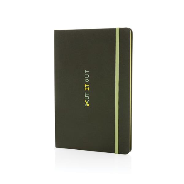 Notatnik (80 kartek 70g/m2 w linie), wykonany z materiałów pochodzących z recyklingu z certyfikatem GRS, całkowita zawartość materiałów z recyklingu obliczona na podstawie wagi całkowitej produktu: 68%, ślad węglowy produktu: 0,65 kg CO2