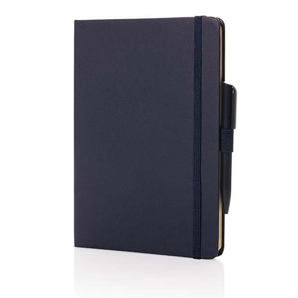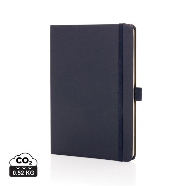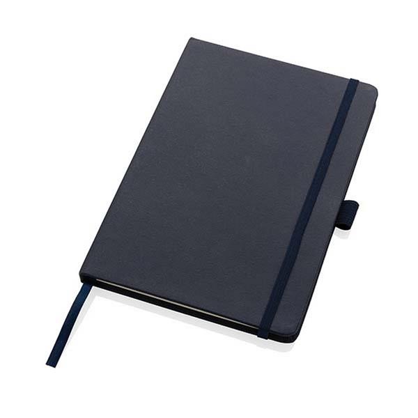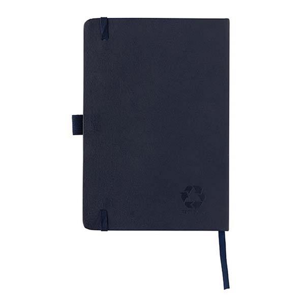 Notatnik A5 (80 kartek w linie z papieru makulaturowego o gramaturze 70 g/m2), okładka wykonana ze skóry z recyklingu, pętla na długopis, elastyczna opaska do zamykania, całkowita zawartość materiałów z recyklingu obliczona na podstawie wagi produktu: 67%, ślad węglowy produktu: 0 kg CO2