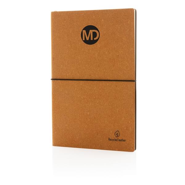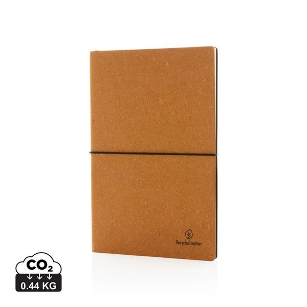Notatnik A5 (80 kremowych kartek 75 g/m2 w linie), okładka wykonana ze skóry pochodzącej z recyklingu, ślad węglowy produktu: 0,44 kg CO2
