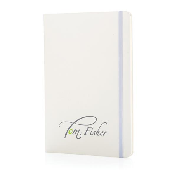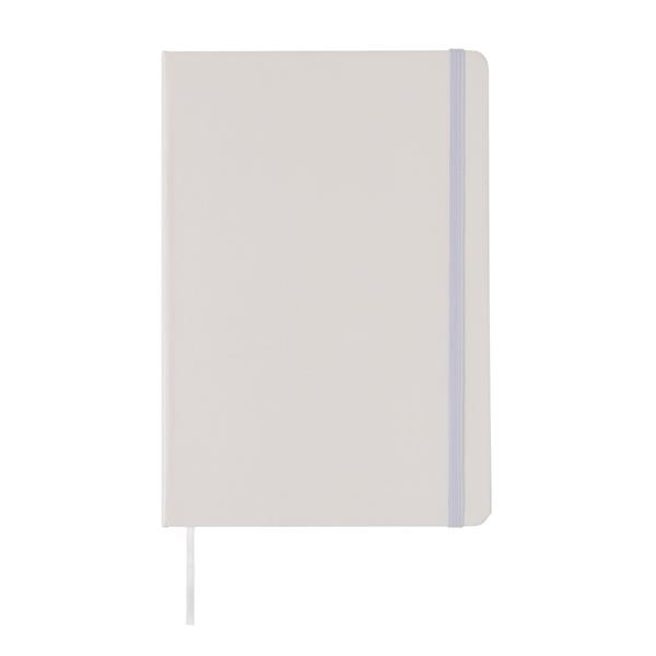 Notatnik A5 (72 puste kartki 70 g/m2 w kolorze kremowym), szkicownik, twarda okładka, tasiemka zakładkowa oraz elastyczna opaska do zamykania, ślad węglowy produktu: 0,54 kg CO2