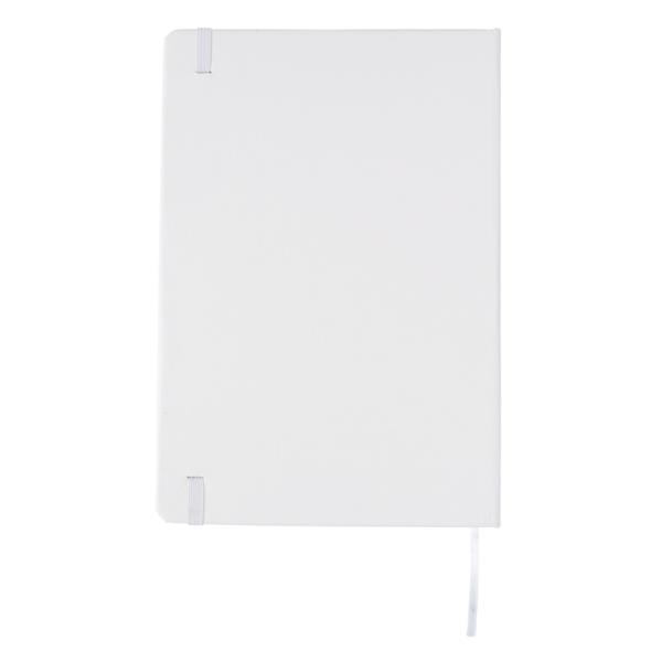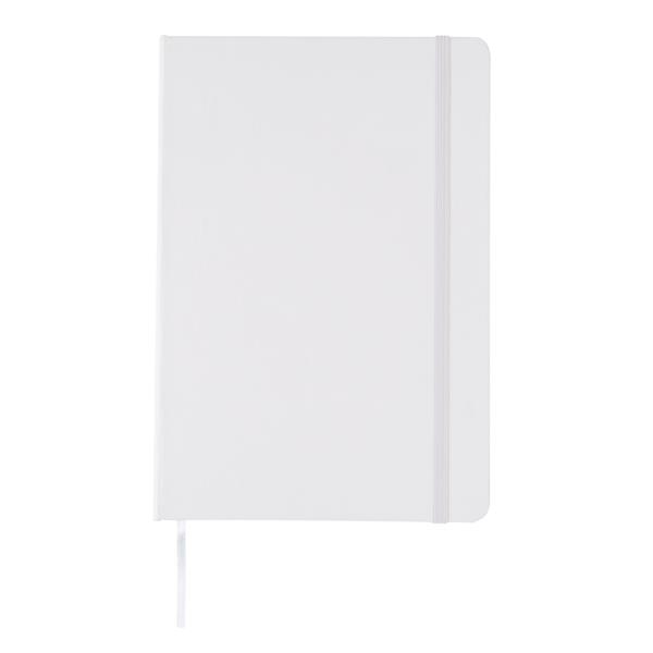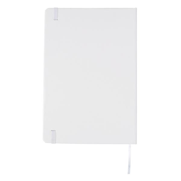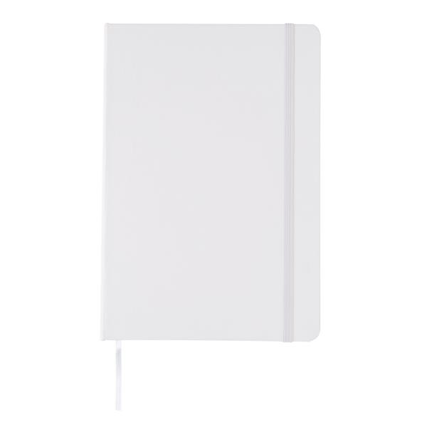Notatnik A5 (72 kremowe kartki 70 g/m2 w linie), twarda okładka, tasiemka zakładkowa i elastyczna opaska do zamykania, ślad węglowy produktu: 0,54 kg CO2