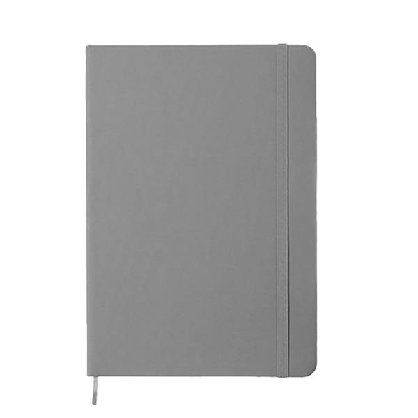 Notatnik w formacie A5, posiada 100 pustych kartek, twarda okładka, tasiemka zakładkowa umożliwia wygodne zaznaczanie ostatniej strony lub ważniejszych notatek, dodatkowe zamknięcie w postaci dopasowanej kolorystycznie elastycznej opaski, produkt wykonany z PU