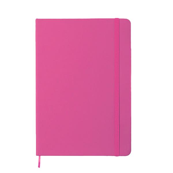 Notatnik w formacie A5, posiada 100 pustych kartek, twarda okładka, tasiemka zakładkowa umożliwia wygodne zaznaczanie ostatniej strony lub ważniejszych notatek, dodatkowe zamknięcie w postaci dopasowanej kolorystycznie elastycznej opaski, produkt wykonany z PU