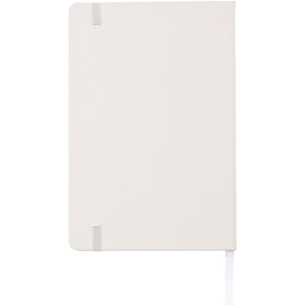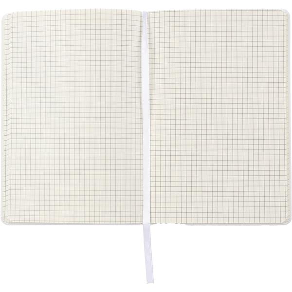 Notatnik A5 w twardej okładce posiada 80 kartek w kratkę, tasiemka zakładkowa umożliwia wygodne zaznaczanie ostatniej strony lub ważniejszych notatek, dodatkowe zamknięcie w postaci dopasowanej kolorystycznie elastycznej opaski, produkt wykonany z papieru, kartonu, gumy, poliestru