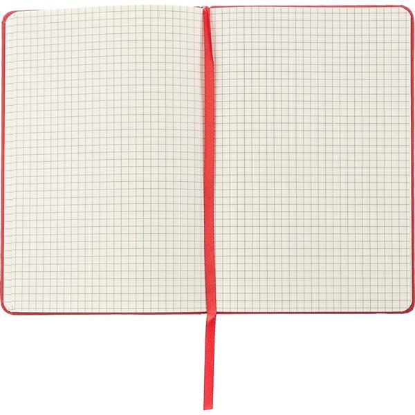 Notatnik A5 w twardej okładce posiada 80 kartek w kratkę, tasiemka zakładkowa umożliwia wygodne zaznaczanie ostatniej strony lub ważniejszych notatek, dodatkowe zamknięcie w postaci dopasowanej kolorystycznie elastycznej opaski, produkt wykonany z papieru, kartonu, gumy, poliestru