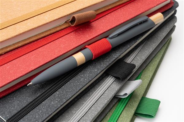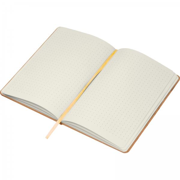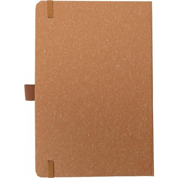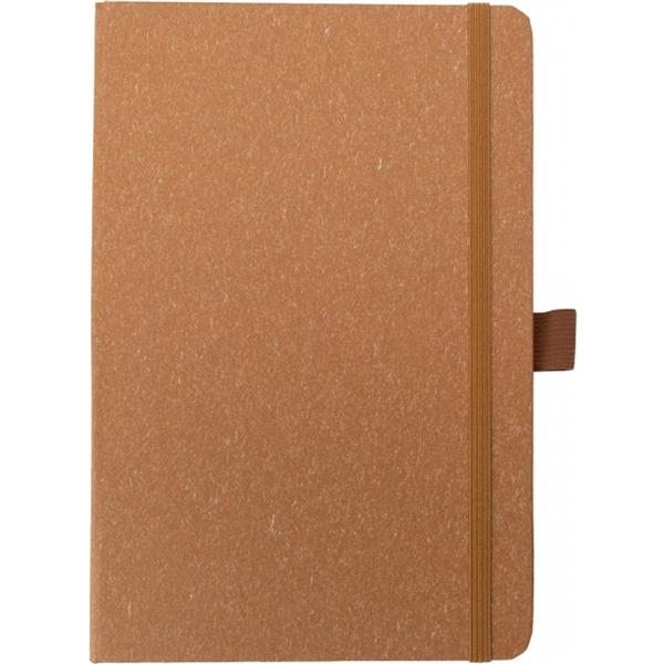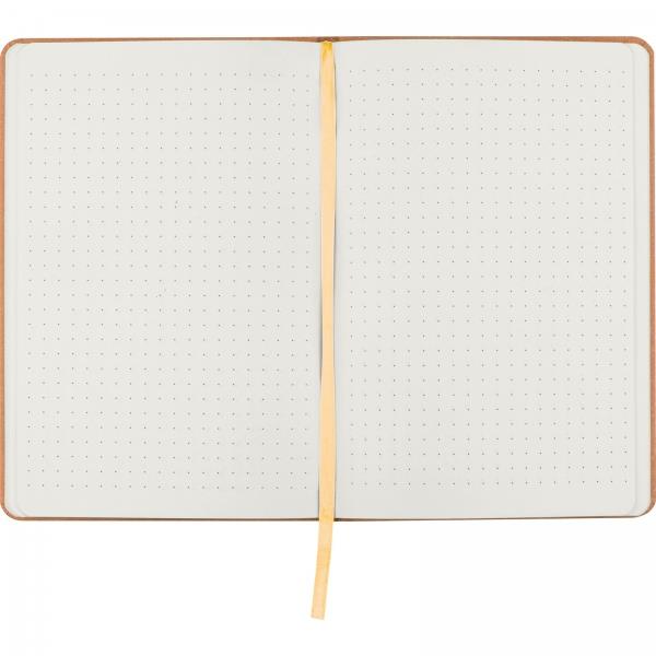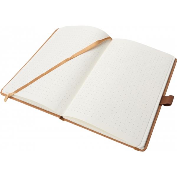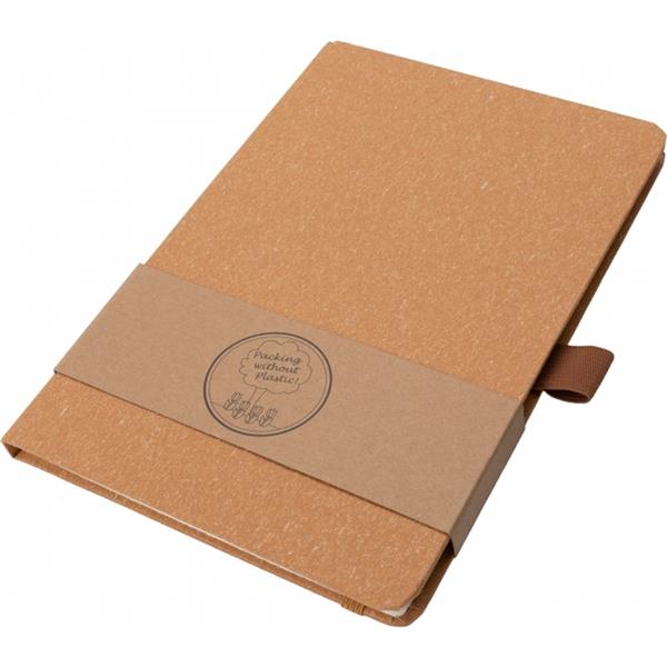 Notes o formacie A5 z zakładką i 160 stronami w kropki, zamykany na gumkę. Zarówno tekturowa okładka, jak i kartki są wykonane z papieru pochodzącego z recyklingu.