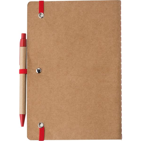 Notatnik A5 z tektury pochodzącej z recyklingu (120 pustych stron), elastyczna opaska do zamykania, dołączony długopis ze słomy pszenicznej