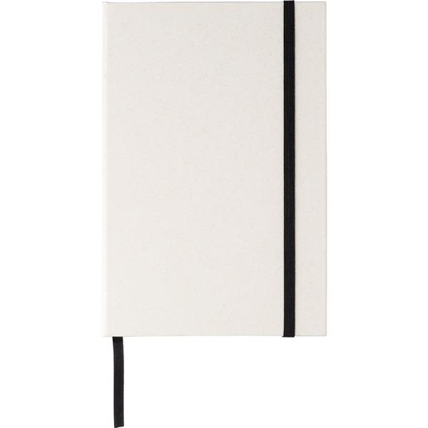Notatnik A5 z kartonu po mleku, 80 kartek, elastyczna opaska do zamykania, tasiemka zakładkowa