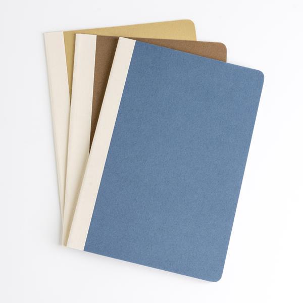 Notatnik A5 z okładką z tektury naturalnej. Ten notatnik wyróżnia się okładką wykonaną z ponownie wykorzystanych włókien naturalnych pochodzących z różnych źródeł, takich jak różne owoce, co czyni go bardziej przyjazną dla środowiska opcją w porównaniu do konwencjonalnych notatników. Grzbiet wykonany z bawełny stanowi elegancki kontrast z odcieniem okładki, dodając odrobinę wyrafinowania. Wnętrze zawiera 128 stron gładkiego, certyfikowanego papieru w kolorze kości słoniowej, zapewniającego jakość i odpowiedzialność za środowisko.