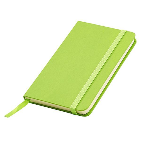 Notes A6 w twardej oprawie. Posiada 160 czystych stron oraz gumkę i materiałową zakładkę w kolorze okładki. Rozmiar: 9 x 14 x 0,7 cm T3 (tampodruk): 5 x 3 S1 (sitodruk): 7 x 11 DC2 (druk cyfrowy UV do 30 cm2): 6 x 8 cm Kolor: Jasno zielony