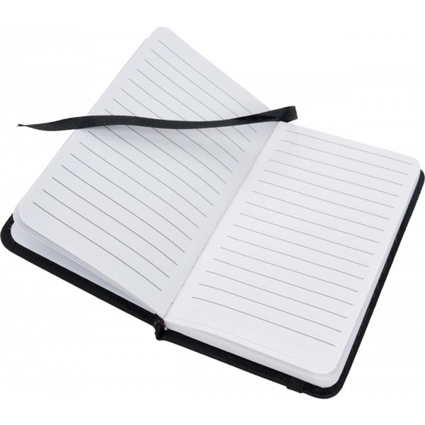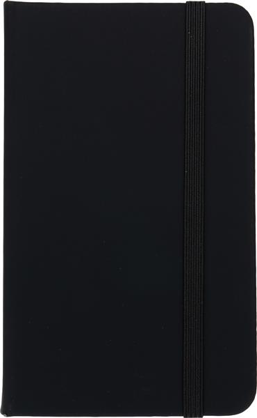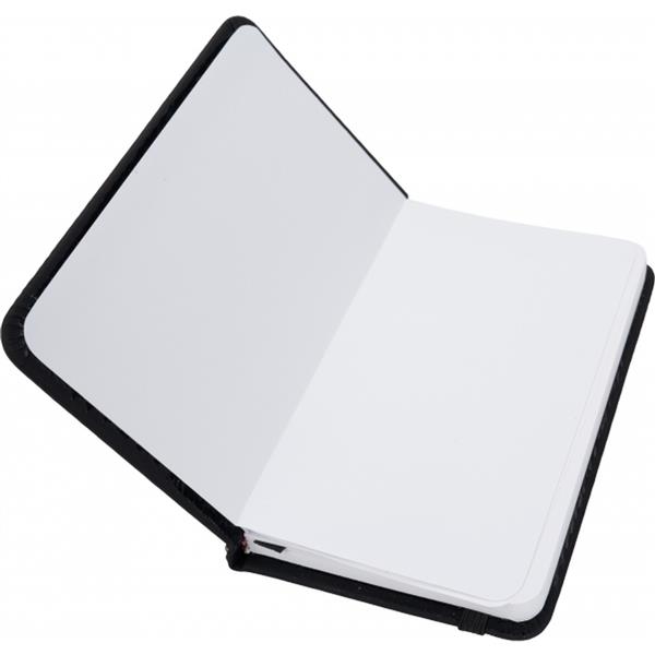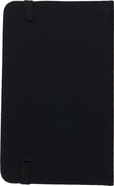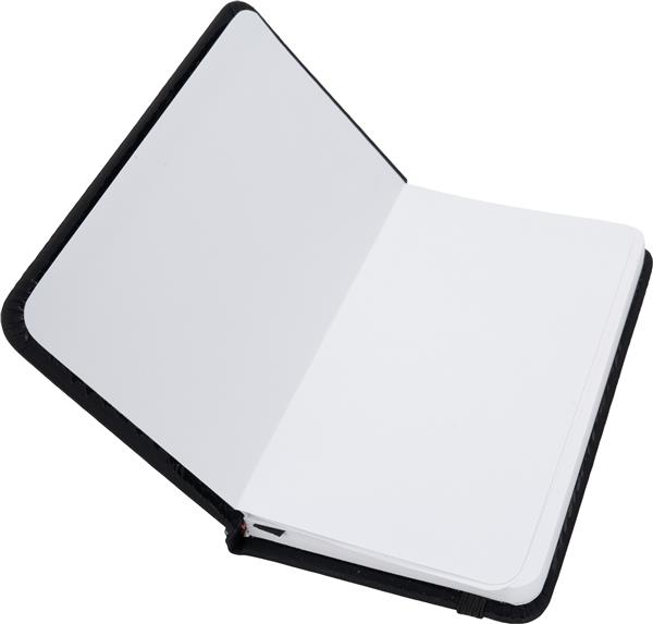 Notes (160 stron) w linie, w twardej oprawie z PU. Posiada tasiemkową zakładkę oraz gumkę umożliwiającą zamknięcie.