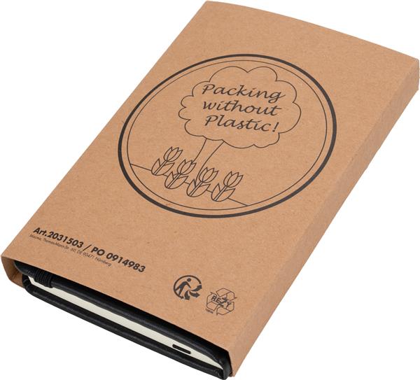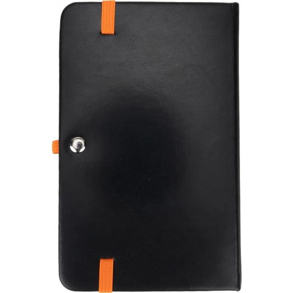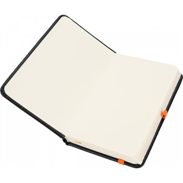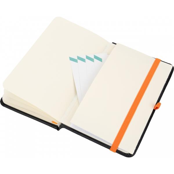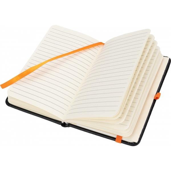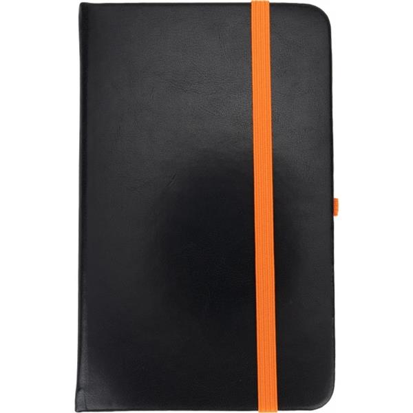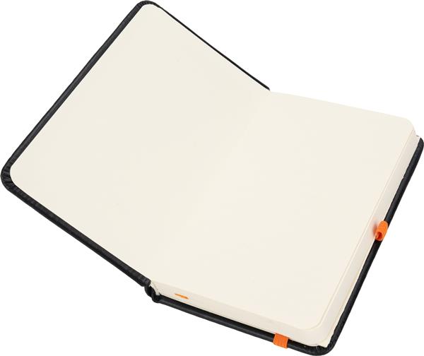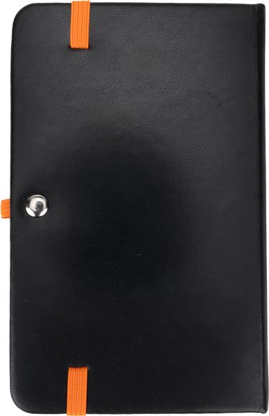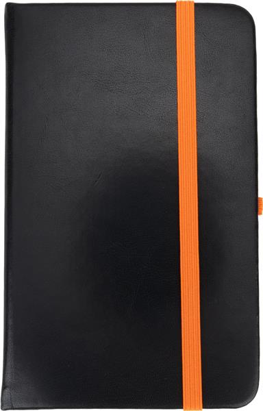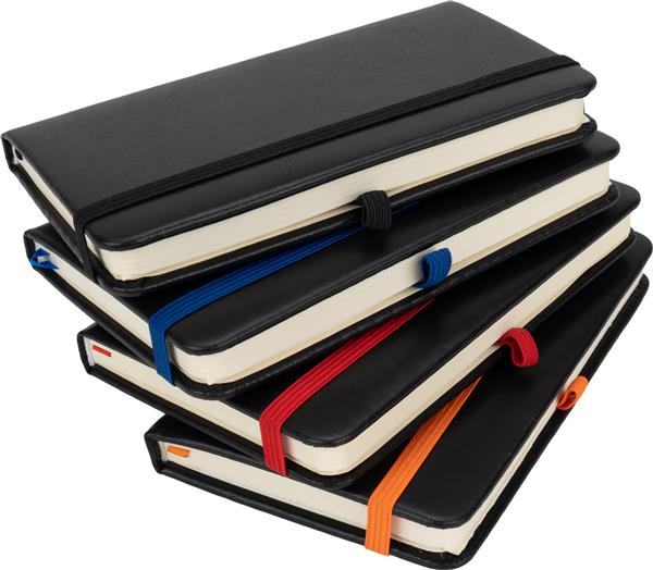 Notatnik A6 w okładce ze skóry syntetycznej, ze 160 stronami w linie, zakładką, pętelką na długopis i gumką do zamykania.
