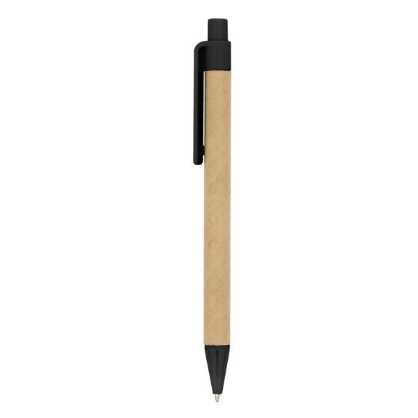 Notatnik A6 (50 kartek 80 g/m2 w linie), twarda okładka z kartonu z recyklingu, spiralne bindowanie, w komplecie długopis z trzonem z kartonu z recyklingu i kolorowymi elementami (wyprodukowany w Ukrainie / made in Ukraine)