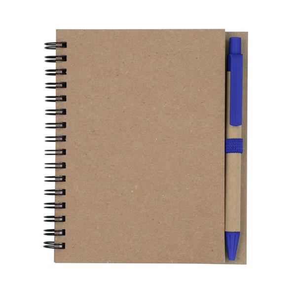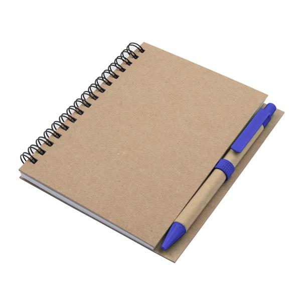 Notatnik A6 (50 kartek 80 g/m2 w linie), twarda okładka z kartonu z recyklingu, spiralne bindowanie, w komplecie długopis z trzonem z kartonu z recyklingu i kolorowymi elementami (wyprodukowany w Ukrainie / made in Ukraine)