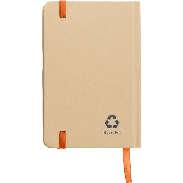Notatnik A6 (160 kartek w linie), twarda okładka, wykonany z papieru kraftowego z recyklingu, tasiemka zakładkowa i elastyczna opaska do zamykania