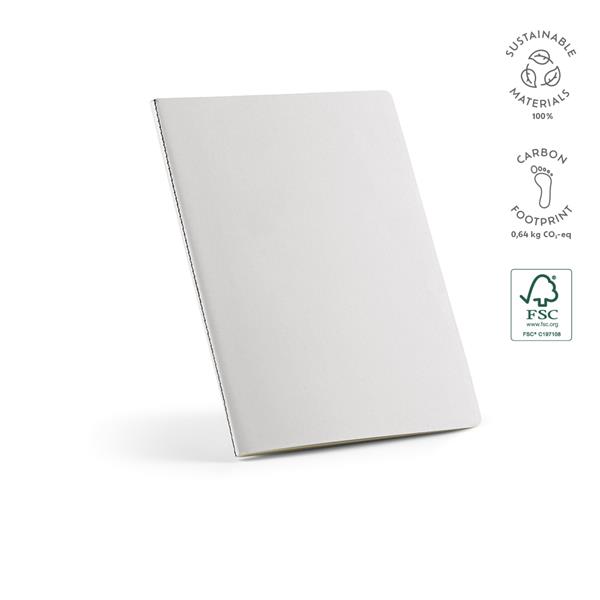 Nasz notatnik A4 to połączenie ekologicznej elegancji i funkcjonalności. Wykonany z kartonowej okładki pochodzącej z recyklingu i 160 stron w linie z papieru FSC 70 g/m2 w kolorze kości słoniowej, jest zarówno przyjazny dla środowiska, jak i pojemny. Miękka okładka i zszywany grzbiet.