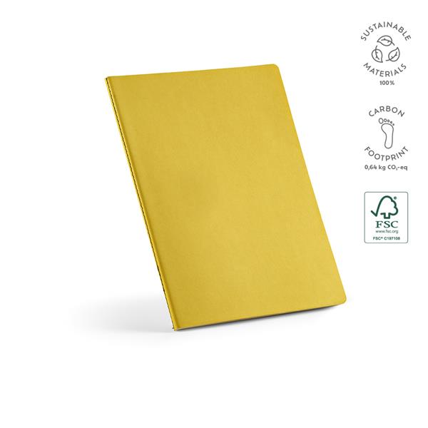 Nasz notatnik A4 to połączenie ekologicznej elegancji i funkcjonalności. Wykonany z kartonowej okładki pochodzącej z recyklingu i 160 stron w linie z papieru FSC 70 g/m2 w kolorze kości słoniowej, jest zarówno przyjazny dla środowiska, jak i pojemny. Miękka okładka i zszywany grzbiet.