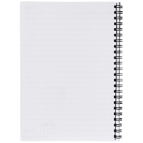 Notes na spirali Desk-Mate® w formacie A4. Notatnik zawiera białą lub czarną przedziałkę. Dostępny w różnych rozmiarach. Obity w lakierowaną, twardą okładkę (250g/m2) z czystymi kartkami (80g/m2). Standardowo 50 kartek, dostępny również w wersji 80 kartek. Możliwość zdobienia okładki i każdego arkusza.
