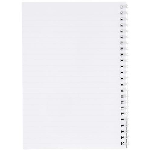 Notatnik na spirali Desk-Mate® w formacie A5. Zawiera 50 arkuszy (80 g/m2) czystych kartek z okładką (450 g/m2). Okładka odporna na rozrywanie i działanie wody. Biała przedziałka. Możliwość zdobienia okładki i każdego arkusza.
