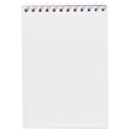 Notes na spirali Desk-Mate® w formacie A6. Notatnik zawiera białą lub czarną przedziałkę. Dostępny w różnych rozmiarach. Obity w lakierowaną, twardą okładkę (250g/m2) z czystymi kartkami (80g/m2). Standardowo 50 kartek, dostępny również w wersji 80 kartek. Możliwość zdobienia okładki i każdego arkusza.