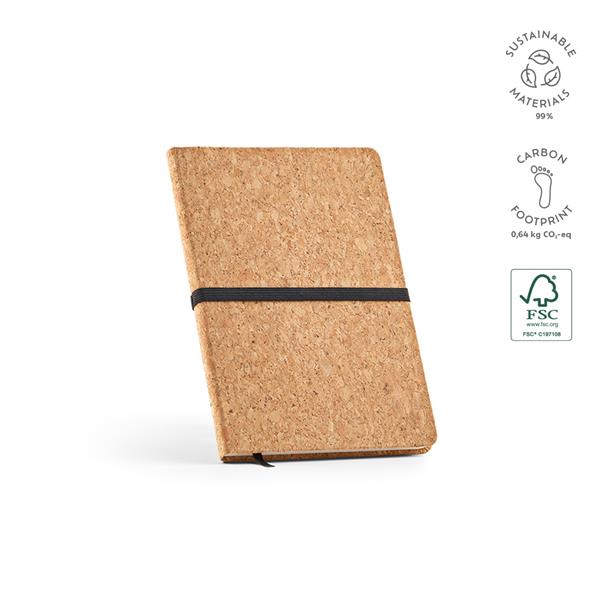 Zanurz się w kreatywności dzięki naszemu notatnikowi korkowemu A5. Wykonany z ekologicznego materiału, oferuje 196 stron w kropki o gramaturze 70 g/m2 pochodzących z recyklingu, zamykanych poziomą gumką. Posiada również wstążkę do zaznaczania swoich myśli.