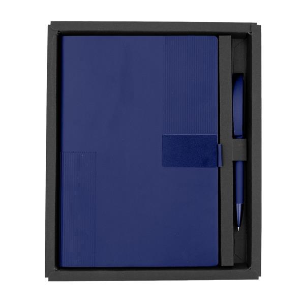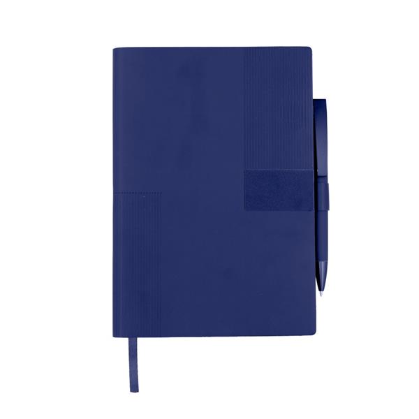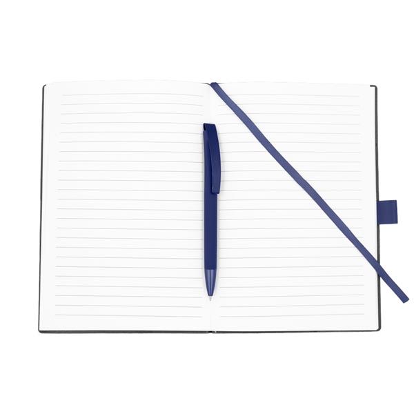 Notatnik w formacie ok. A5 posiada 80 kartek w linie (70 g/m2), tasiemka zakładkowa umożliwia wygodne zaznaczanie ostatniej strony lub ważniejszych notatek, w komplecie długopis typu „twist” z szerokim aluminiowym klipem przeznaczonym do grawerowania, przy szlufce na długopis znajduje się metalowa plakietka do grawerowania, twarda okładka wykonana z PU