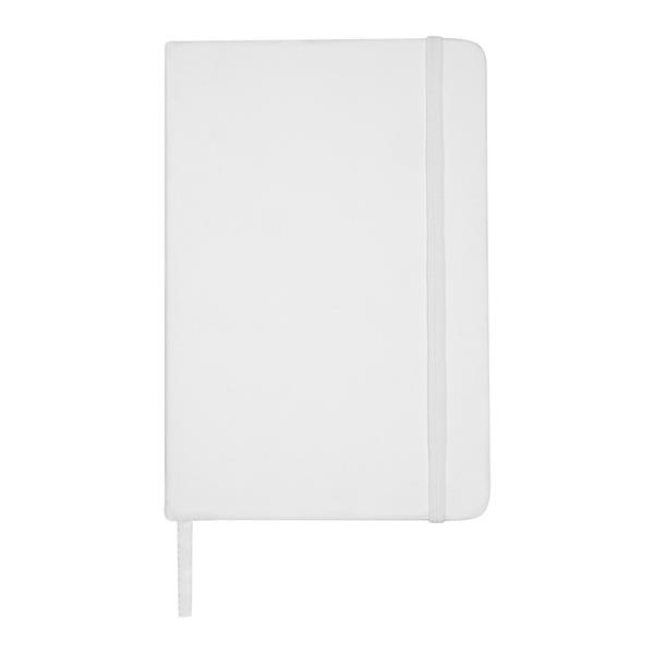 Notatnik w formacie ok. A5, posiada 96 kartek w linie (192 strony), tasiemka zakładkowa umożliwia wygodne zaznaczanie ostatniej strony lub ważniejszych notatek, dodatkowe zamknięcie w postaci dopasowanej kolorystycznie elastycznej opaski, twarda okładka wykonana z PU