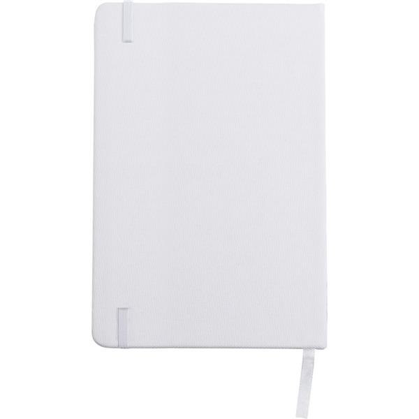 Notatnik RPET (ok. A5, 80 kartek w linie), tasiemka zakładkowa i elastyczna opaska do zamykania