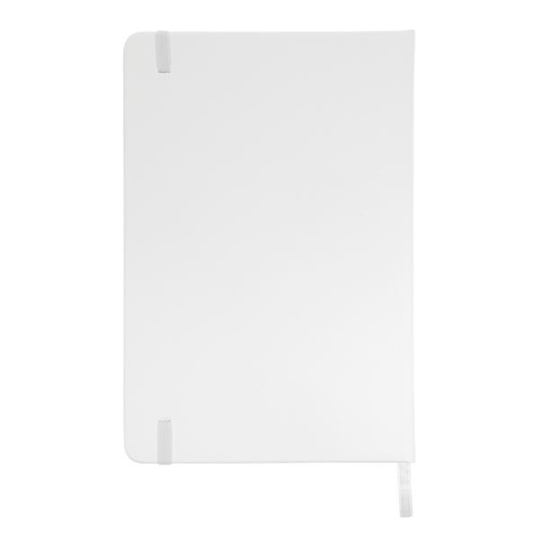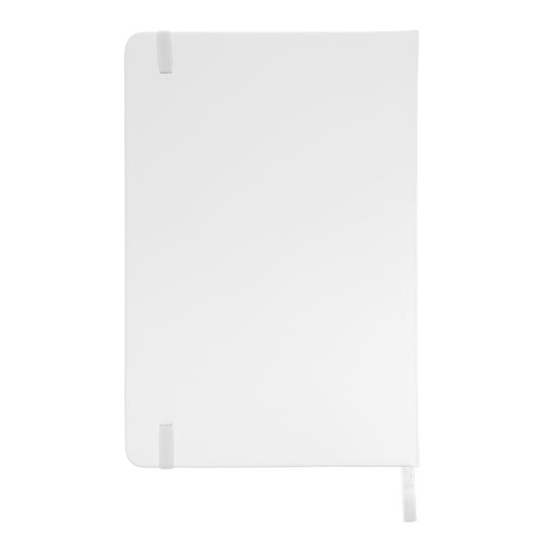 Notatnik w formacie ok. A5, posiada 96 kartek w linie (192 strony), tasiemka zakładkowa umożliwia wygodne zaznaczanie ostatniej strony lub ważniejszych notatek, dodatkowe zamknięcie w postaci dopasowanej kolorystycznie elastycznej opaski, twarda okładka wykonana z PU